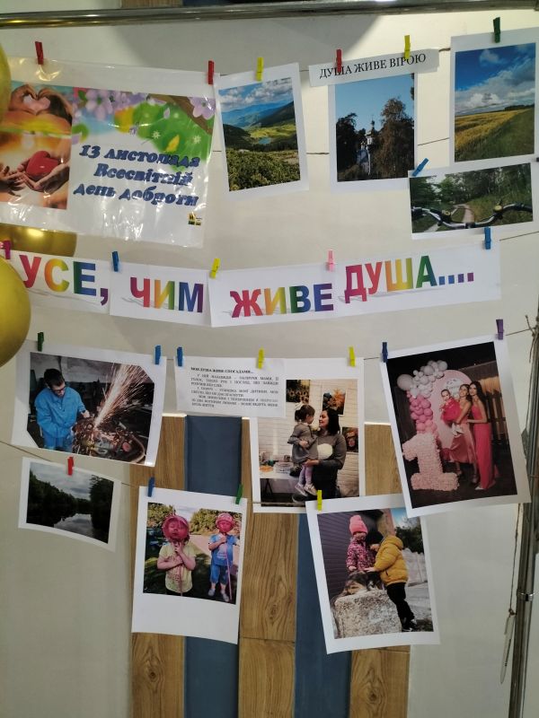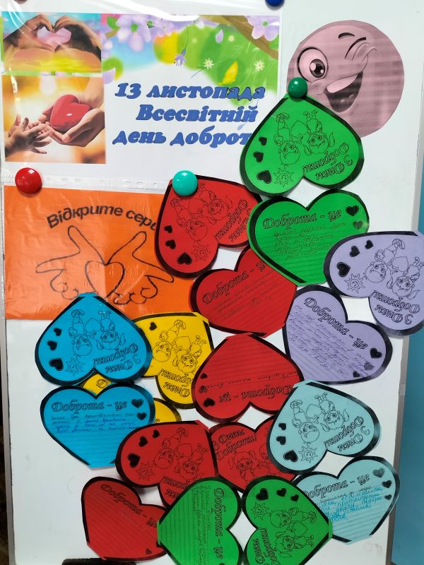 Цього року ми долучилися до Всесвітнього дня доброти, закликаючи зробити свій внесок у спільну справу. Започатковано «Марафон добрих справ», для чого отримали чек-листи з плануванням добрих справ на наступний тиждень. Організовано тематичну фотогалерею «Усе, чим живе душа..» Для педагогічних працівників практичний психолог провела тренінг «Я, ти, ми – країна добрих справ».