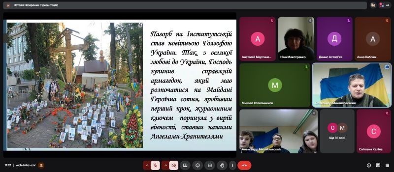 Викладач історії Михайловський О.В. представив історичну довідку та презентацію «Небесна Сотня», а студенти підготували розповідь про Героя Небесної Сотні, сумчанина Олексія Братушку.