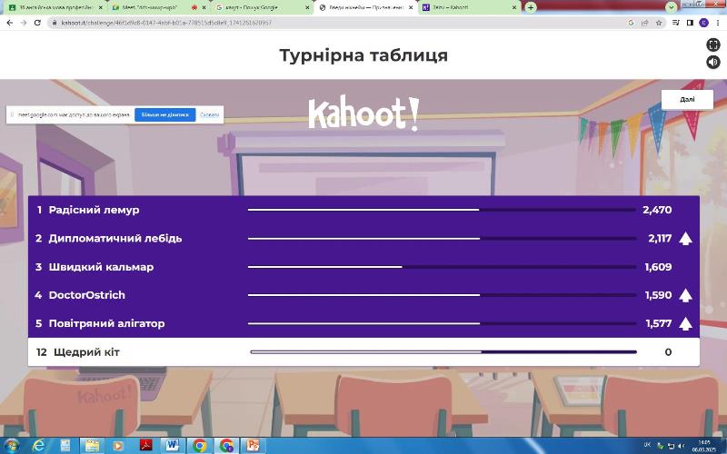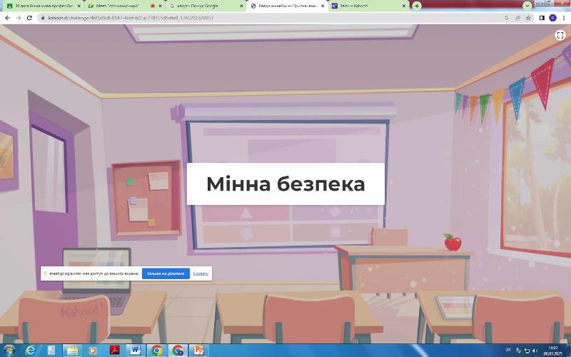 6 березня в закладі з учнями була проведена вікторина з мінної безпеки з використанням інформаційної технології «Kahootit».