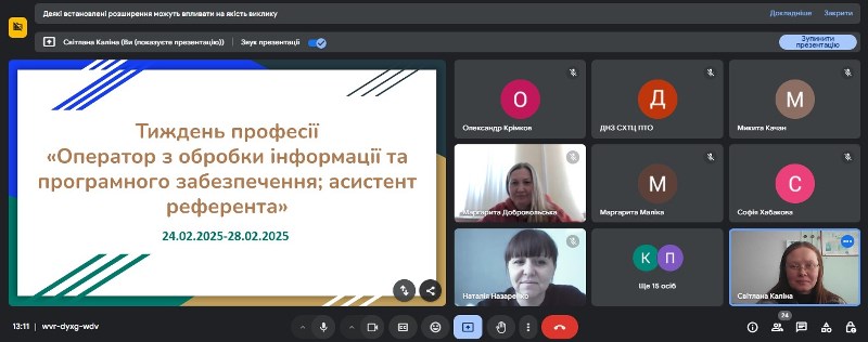 З 24 по 28 лютого 2025 року у нашому закладі відбудеться Тиждень професій, присвячений професіяї «Оператор з обробки інформації та програмного забезпечення; асистент референта». Протягом тижня здобувачі освіти зможуть взяти участь у захопливих майстер-класах, інтелектуальних іграх, тренінгах та конкурсах, які допоможуть їм розширити професійні знання та навички.