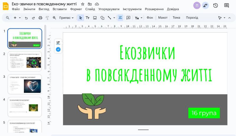 Сьогодні учні груп 16, 26 і 36 активно долучилися до тренінгу “Спільна робота над проєктами в Google Презентаціях”. Під час заняття вони не лише вдосконалювали навички роботи в команді, а й досліджували важливі екологічні теми: