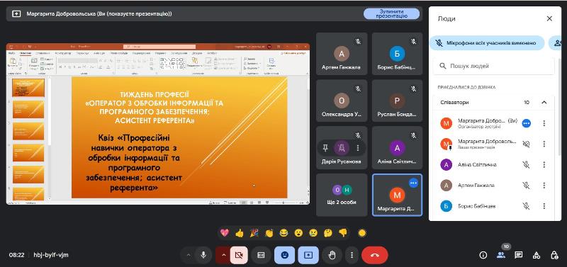 П’ятниця, 28.02.2025 - Квіз "Професійні навички оператора з обробки інформації"