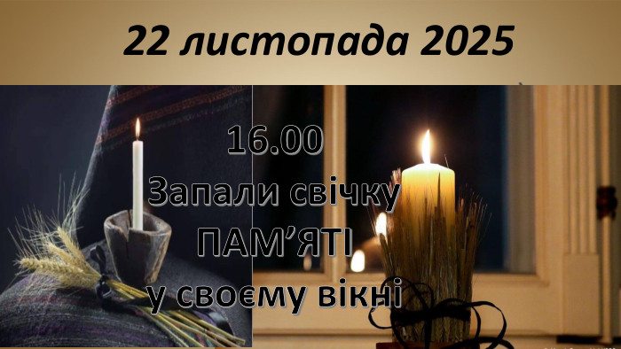 Пропонуємо із настанням темряви запалити свічки пам’яті на підвіконнях — у домівках, офісах. Адже кожен вогник у вікні – це свідчення того, що ми, живі, пам’ятаємо про померлих, це вияв нашої скорботи і віри в майбутнє».