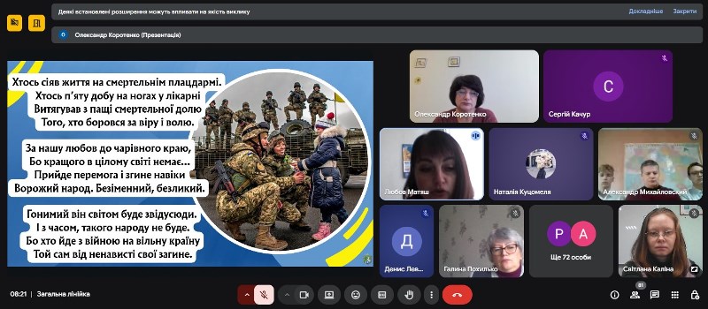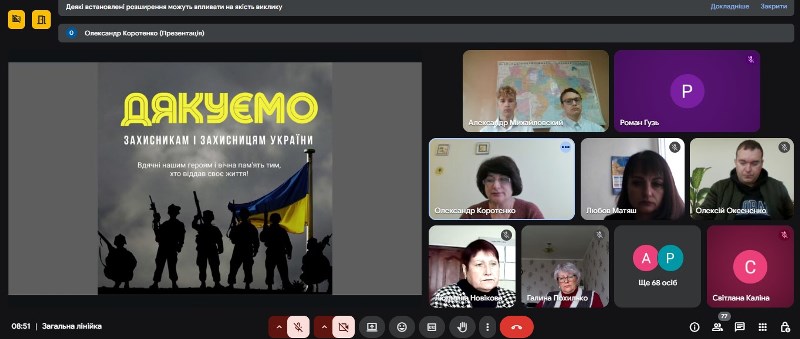 Під час заходу декламувався вірш «Жили собі люди…», презентувалася історична інформація пов’язана з Днем захисників та захисниць України, гортаючи сторінки Книги Пам’яті вшановувалася спогадами та хвилиною мовчання пам’ять про наших колишніх учнів, які заради майбутнього України віддали найцінніше – своє життя.