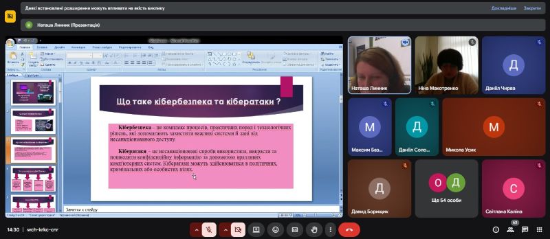 До зустрічі були запрошені Наталія Клименко, провідний юрист Сумського бюро правничої допомоги, та Юлія Василенко, інспектор ювенальної поліції. Фахівці у доступній та змістовній формі розповіли про основні види кіберзлочинів, відповідальність за протиправні дії у мережі, а також надали практичні поради, як захистити свої персональні дані та уникнути небезпек під час спілкування онлайн.